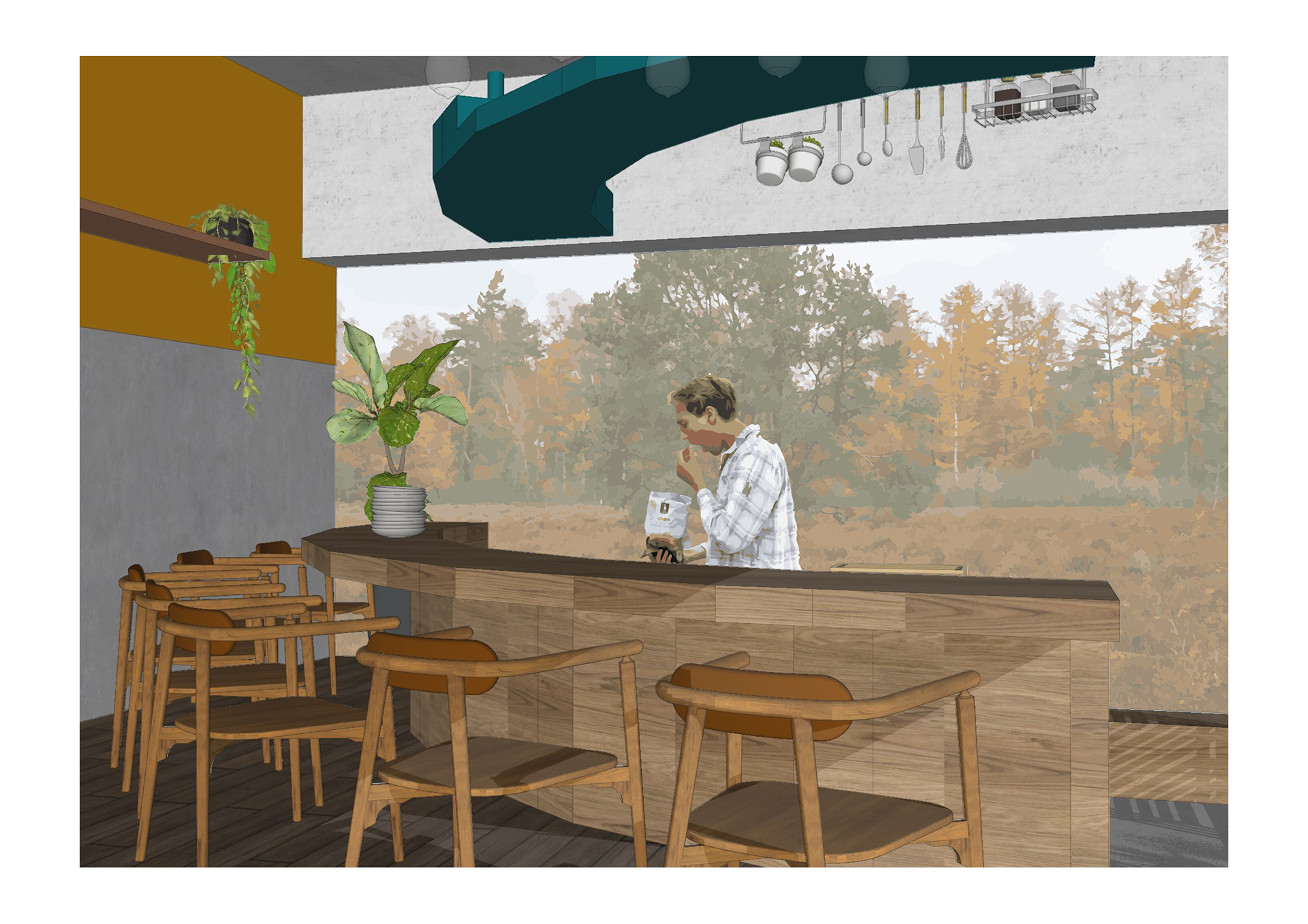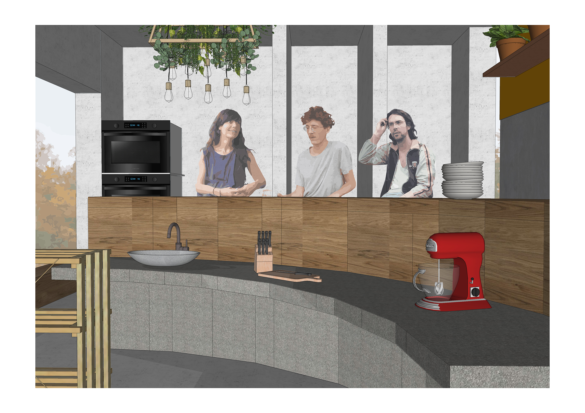 RODEADO is a kitchen and dining area designed for a passionate home chef. With the central placed kitchen and the table around it, the room breathes cooking. The chef can involve his friends and family in their greatest passion.