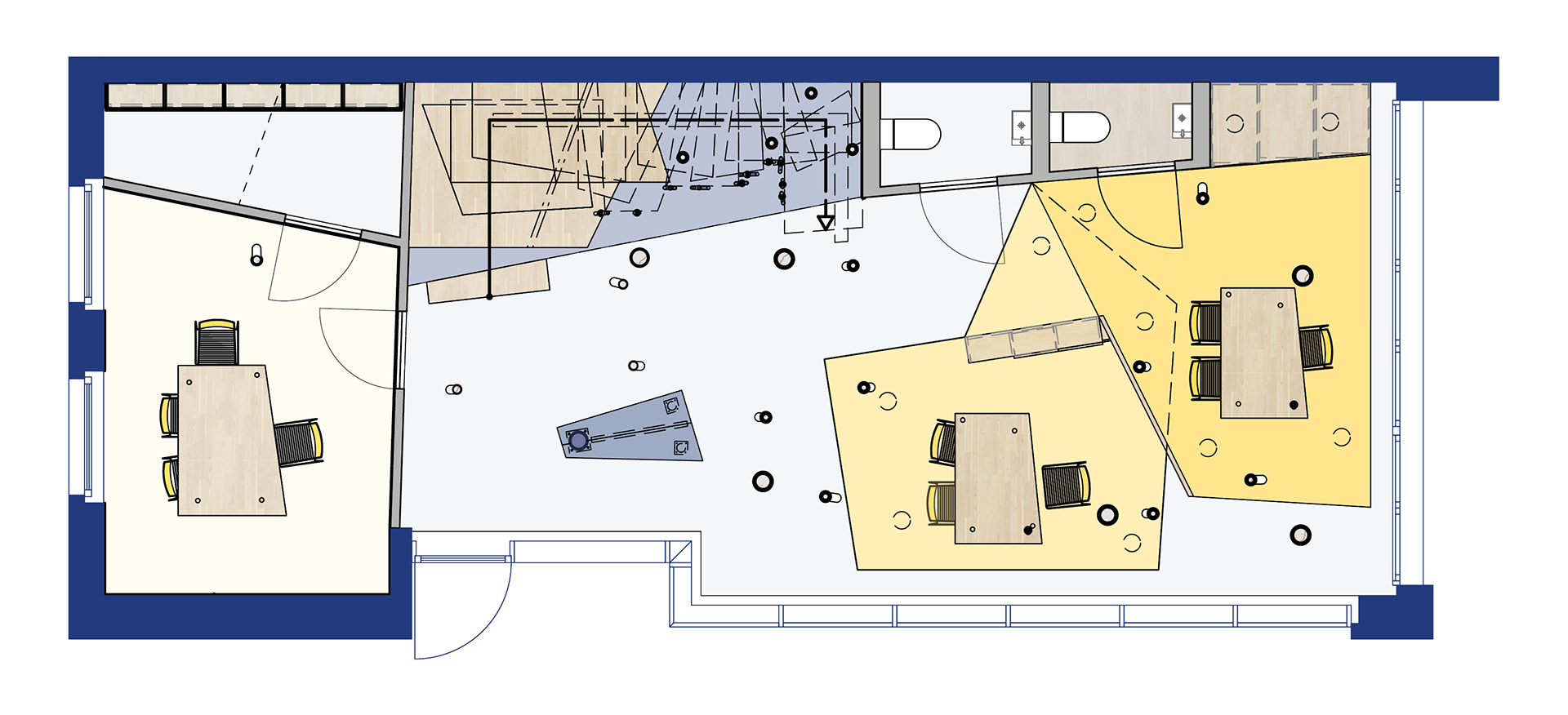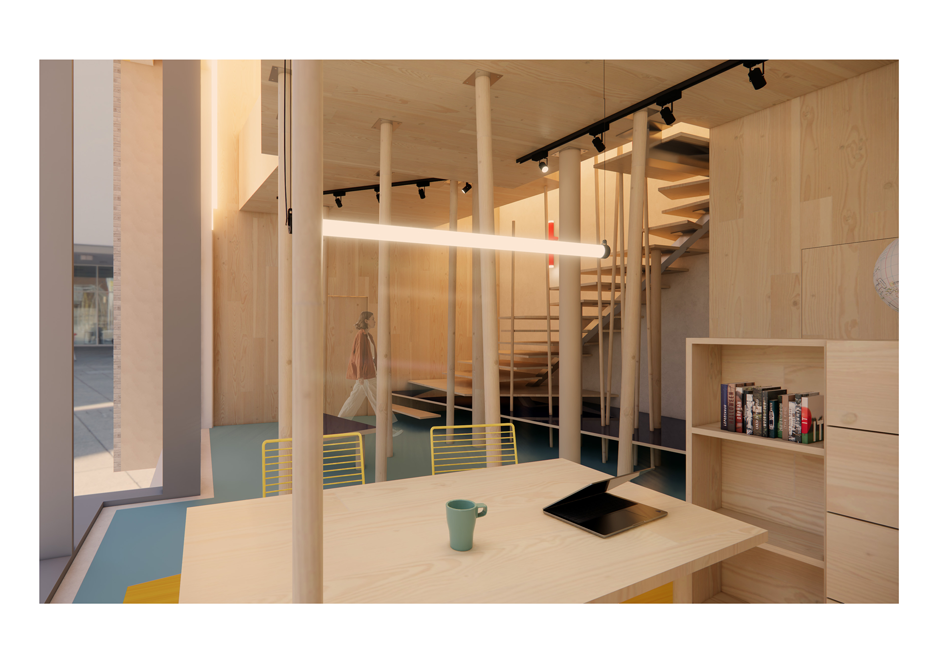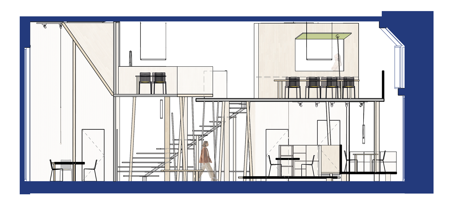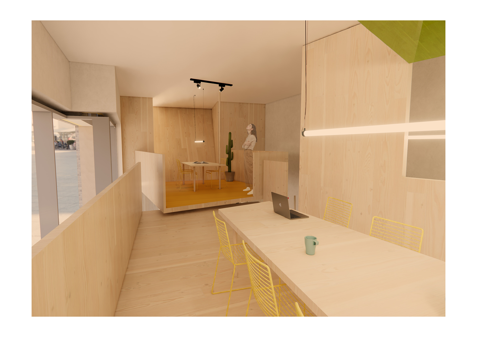 With the use of natural materials, the playfulness of height differences and sporty colours, it is a good representation of outdoor European travels in which the agency is specialised.